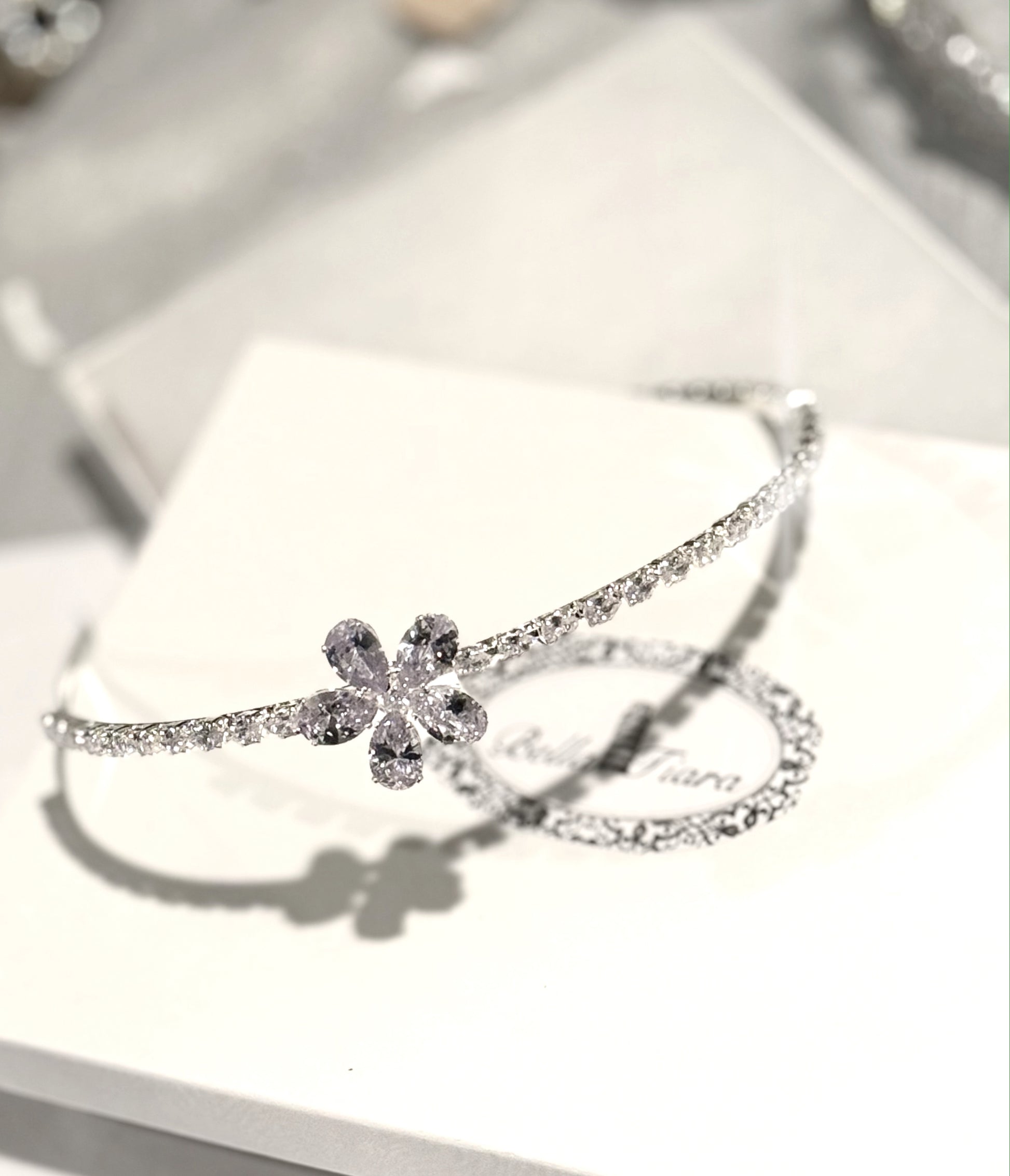 New perfect for your little princess rhinestone flower communion headband, approx 1/2" and spams approx. 12" long.