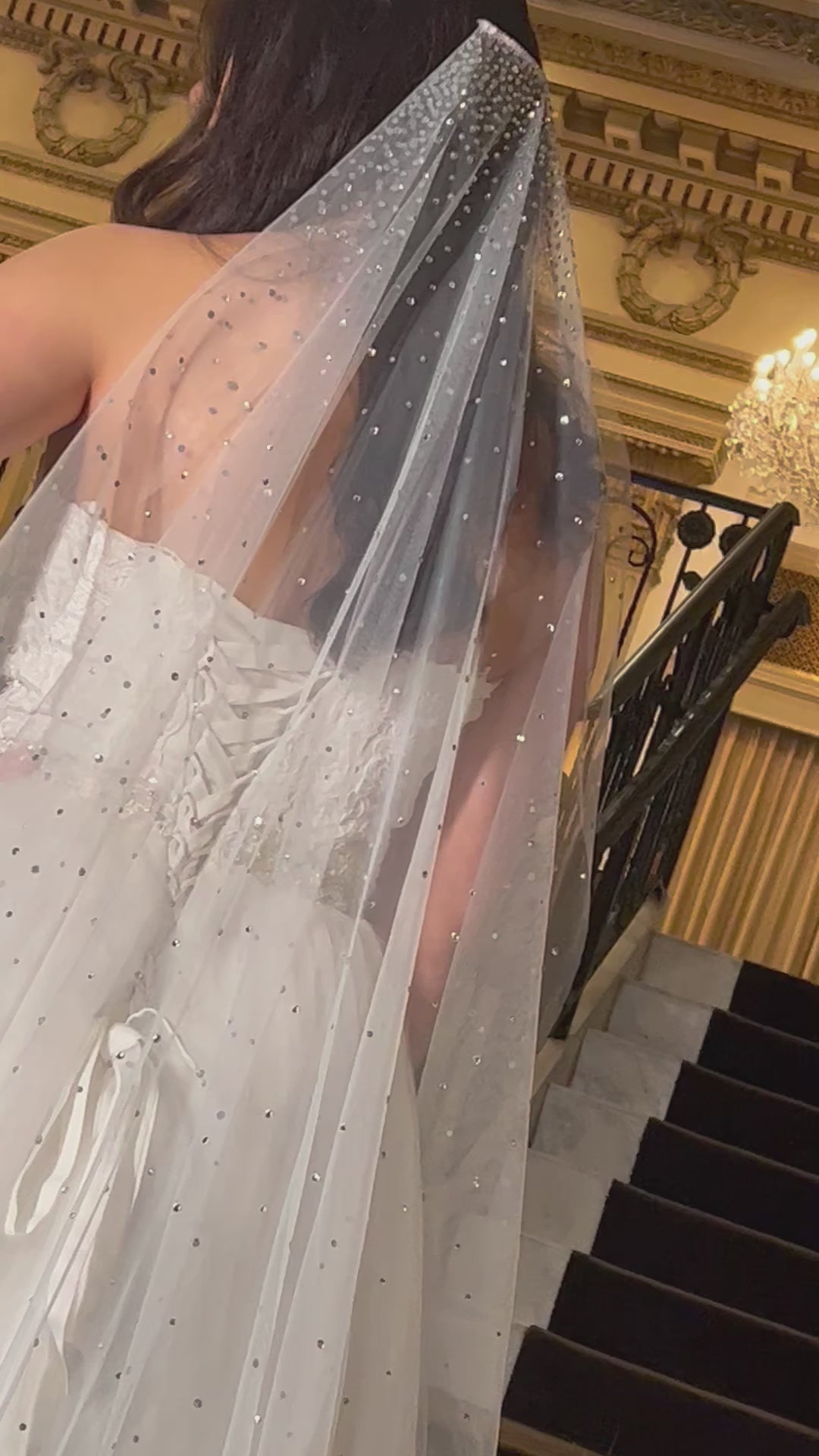 Quintessa – Exquisite Scattered crystal cathedral wedding veil - one left