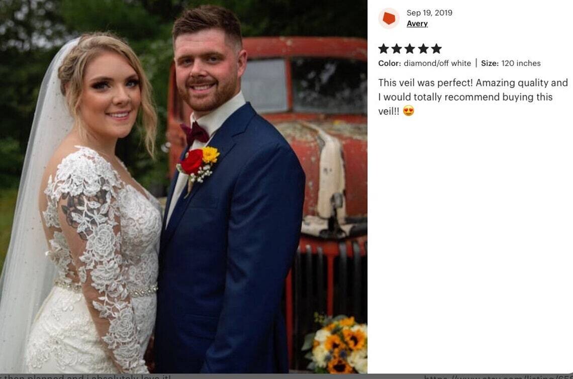 Ivory Veil: Ivory wedding veils are a soft, light shade of ivory with subtle yellow undertones that complement ivory bridal gowns. They also work well with champagne & light gold color gowns. You may not be able to find the exact matching veil/tulle color for your wedding gown because all manufactures are different. However, you can definitely get close enough so that only a veil expert could tell the difference! If there is any noticeable color variation between your dress and your veil, choose a veil that is a shade lighter than your gown.