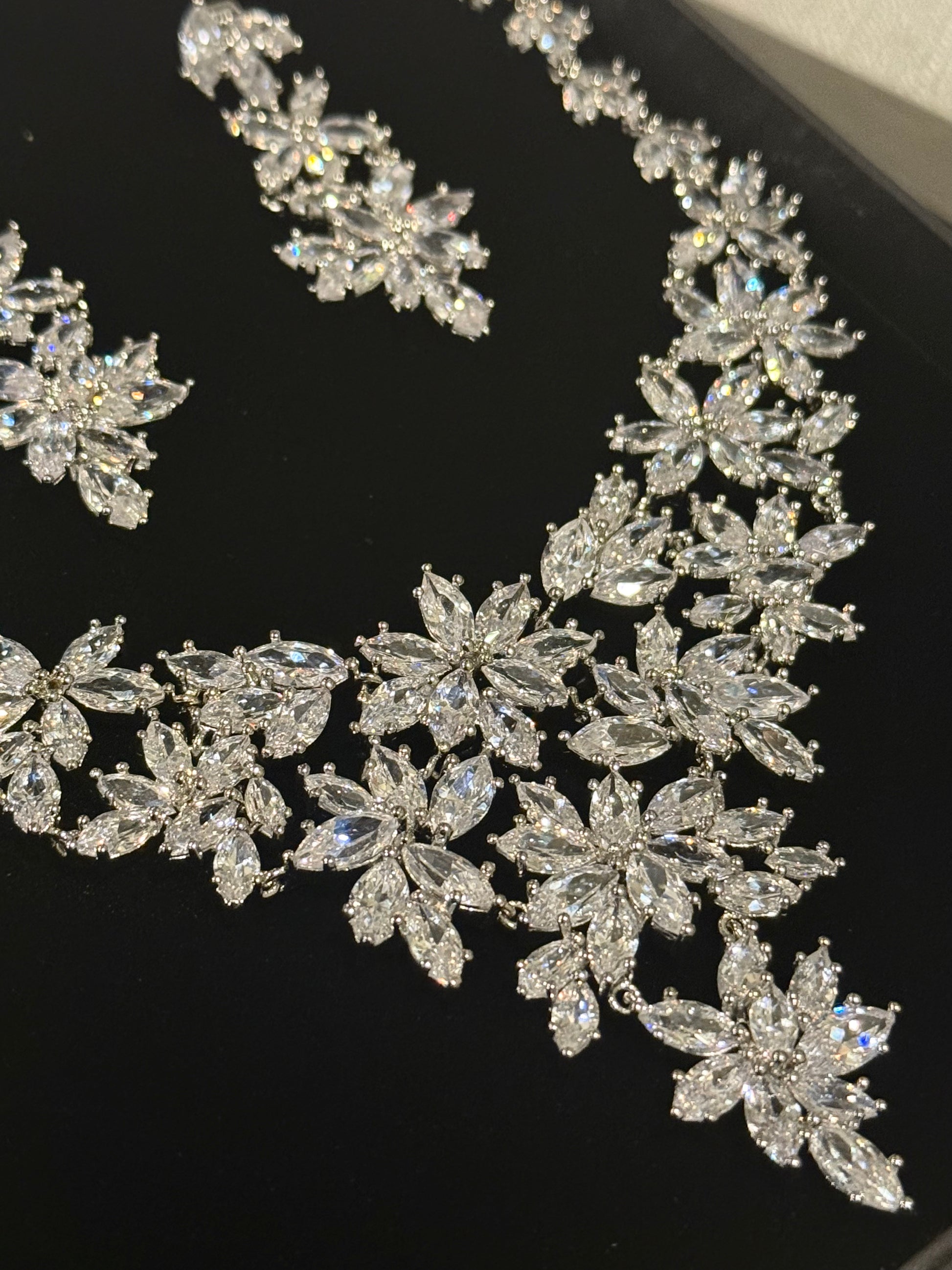 Emmalisa - Moissanite Diamond vine bridal necklace set