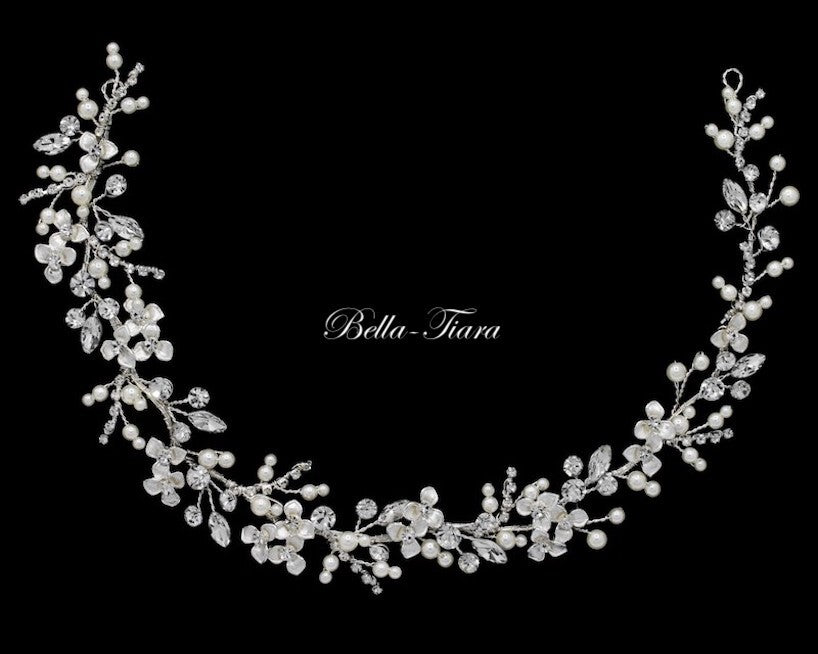 Flavia - Floral Swarovski crystal and pearl communion headband