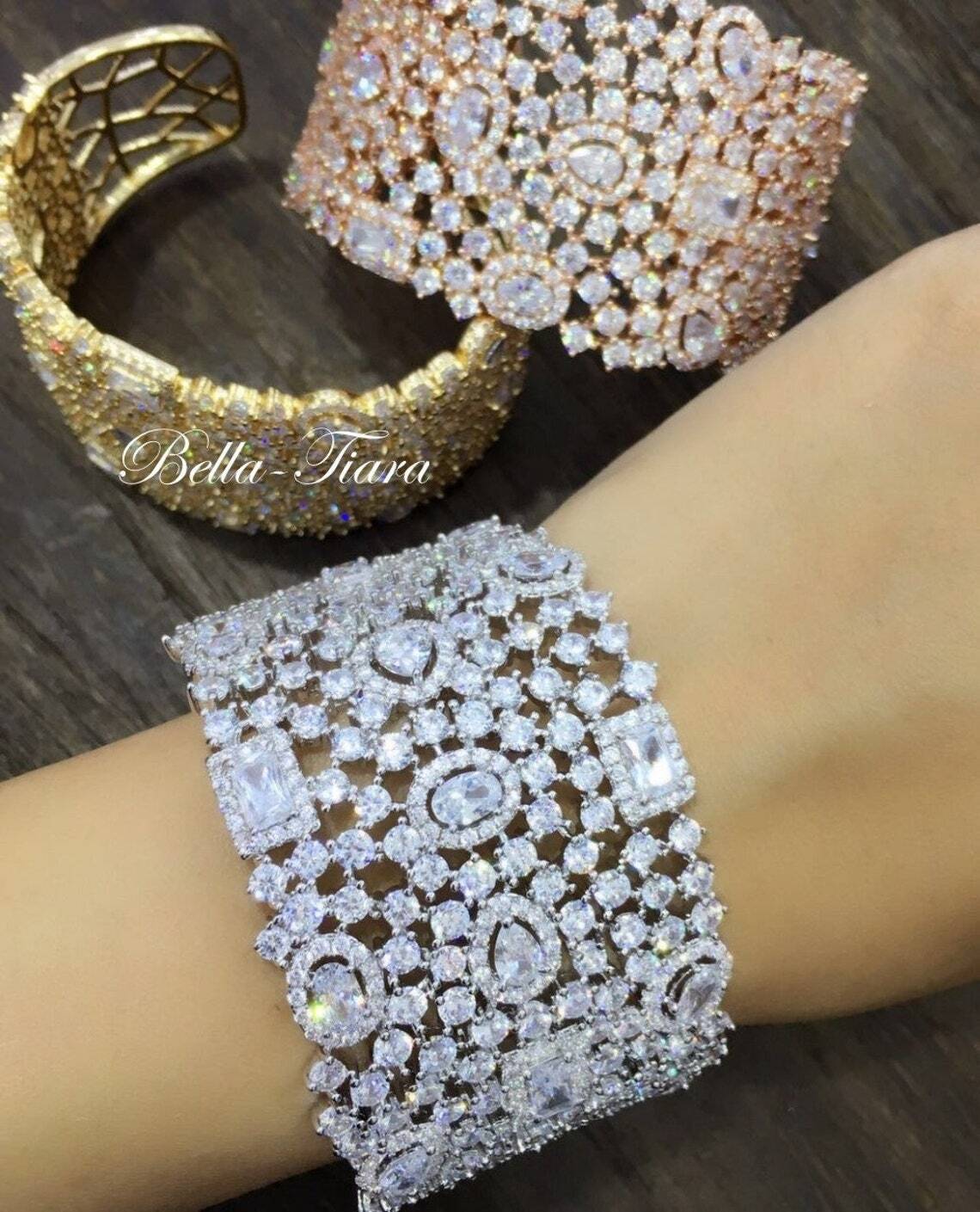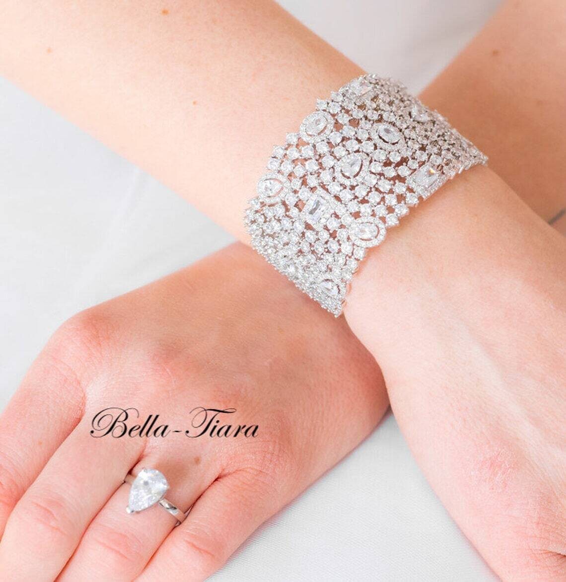 Gorgeous, elegant and glamorous cz crystal wide cuff bracelet