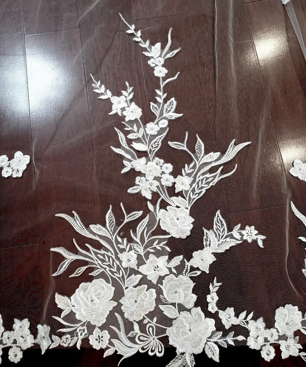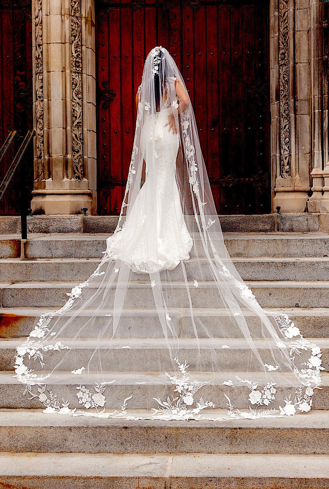 Josefina – Floral crystal lace Cathedral veil