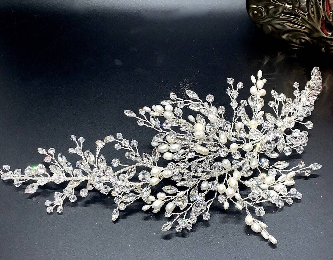 Words cannot describe the beauty and elegance of this bridal comb, wire frame to adjust to your needs with dazzling swarovski vine crystals, off white pearls,