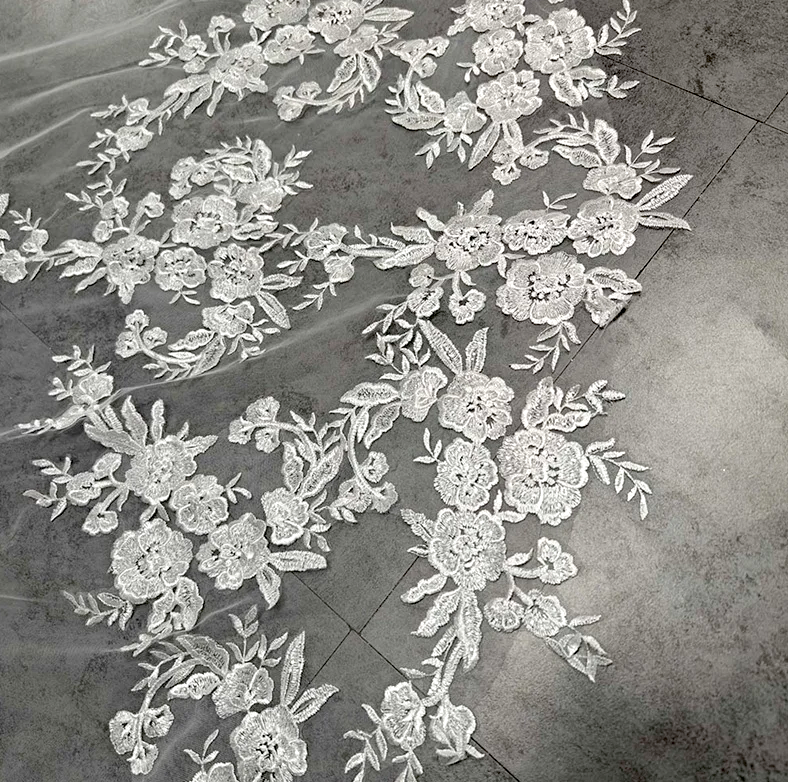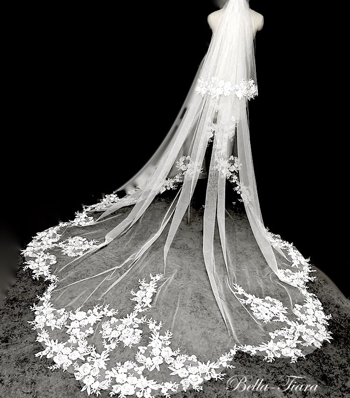 Kendra – Beaded floral lace cathedral wedding veil with blusher