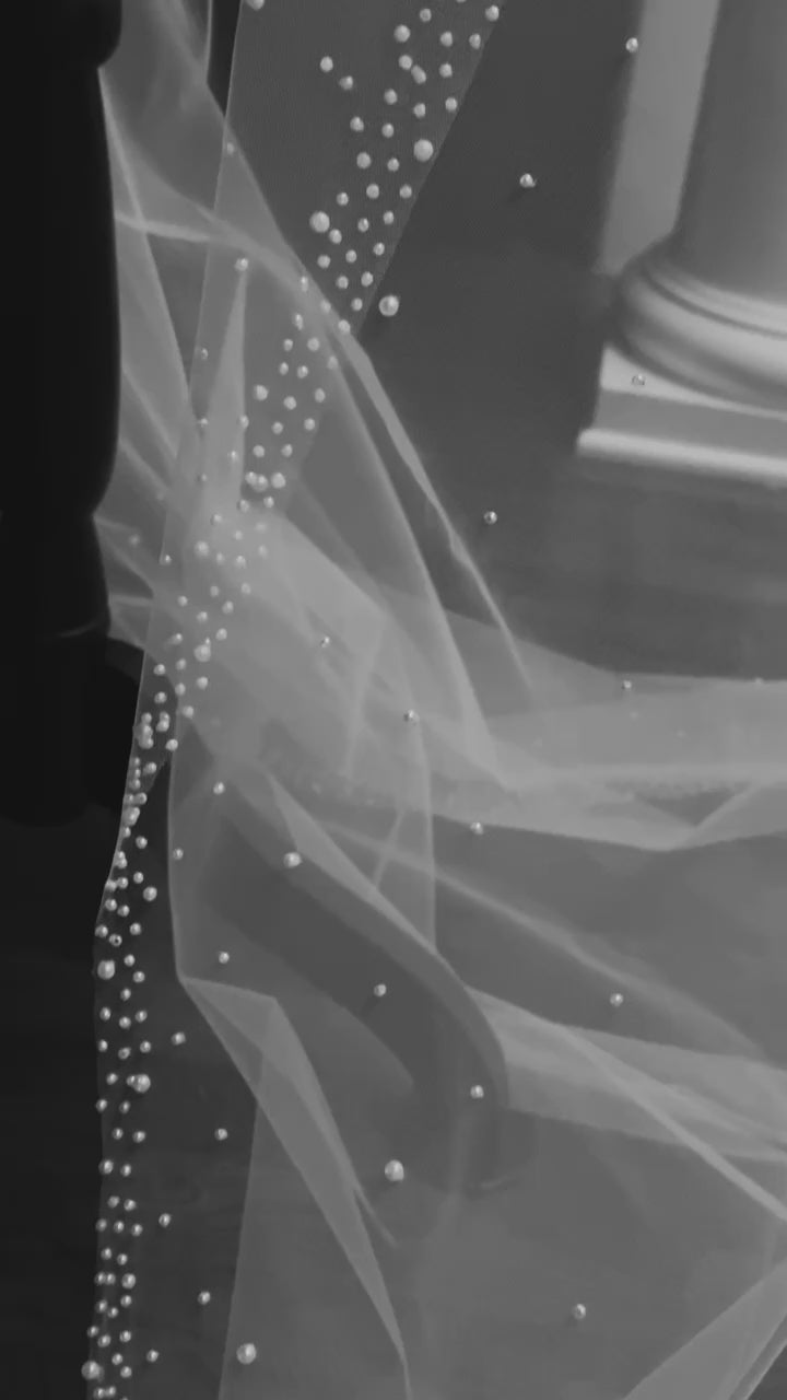 Absolutely Beautiful one of Bella's favorite new to our collection handmade beaded pearl clustered ombre edge veil
