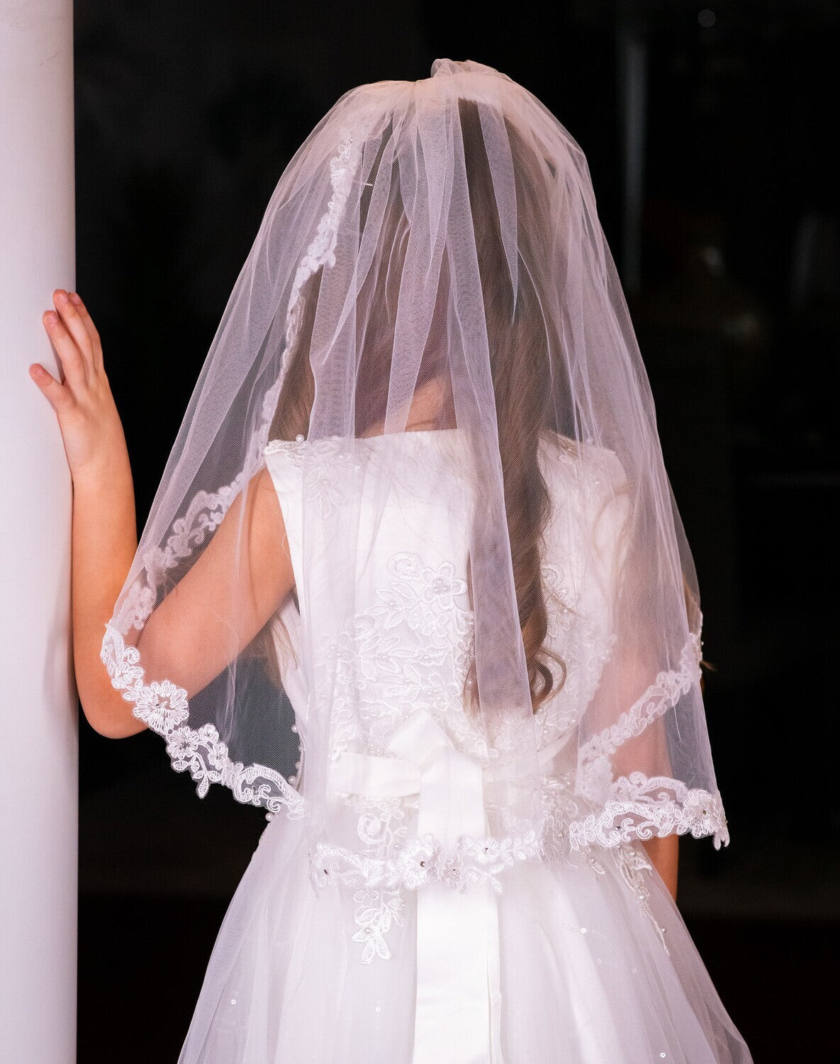 **LITTLE girl is wearing two tier beaded veil we no longer stock only single tier