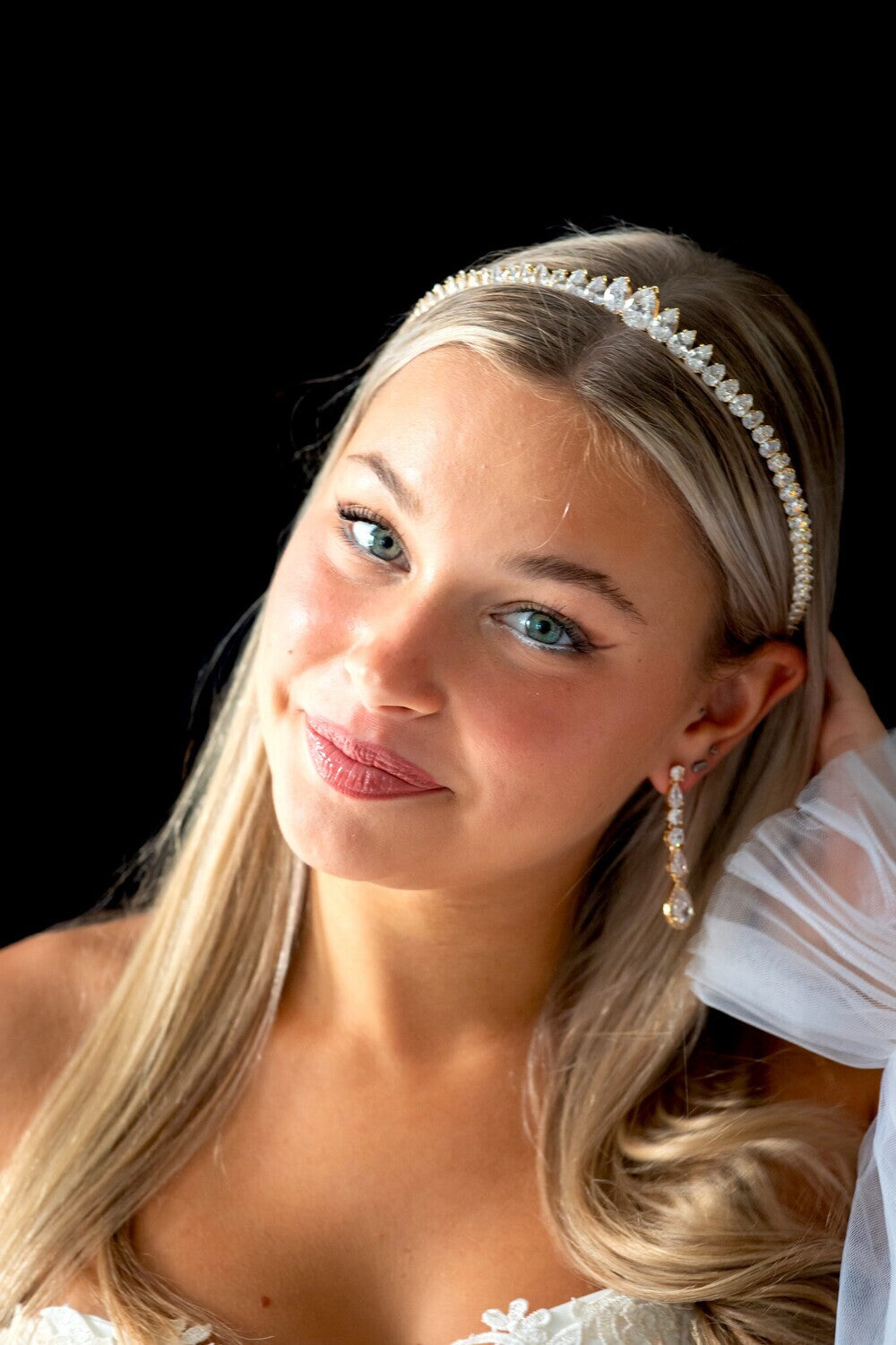 Absolutely beautiful delicate, dazzling and elegant gold princess tiara with extended crystals on the band.