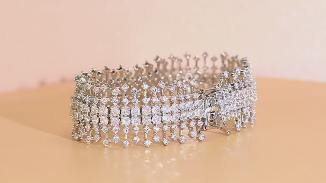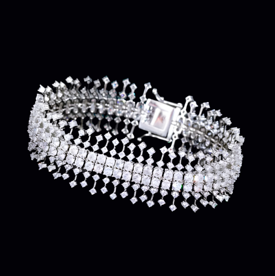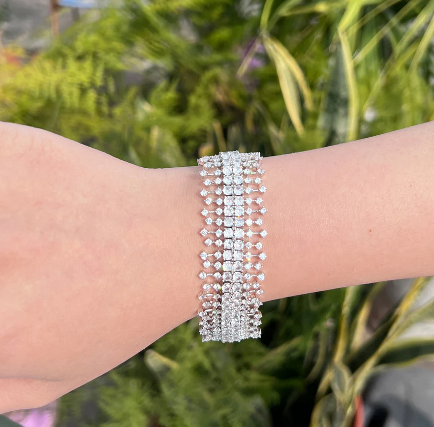 Added to our collection, loving this design, elegant and glamorous cz crystal bracelet. lays flat. Design with crystal all around the perfect fit, approx 2" wide and 7" round suitable for smaller to average wrist.