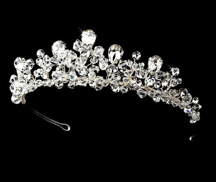 Superb bridal crown of clustered Swarovski crystals and rhinestone with large crystal tear drops.