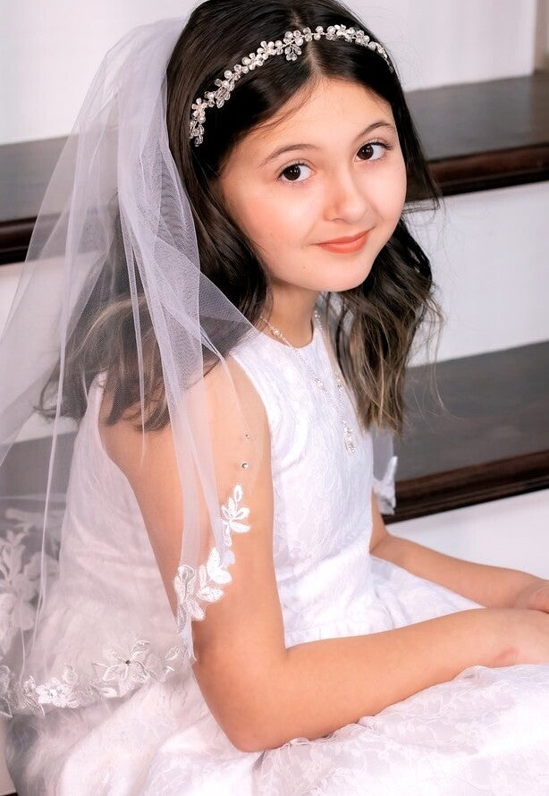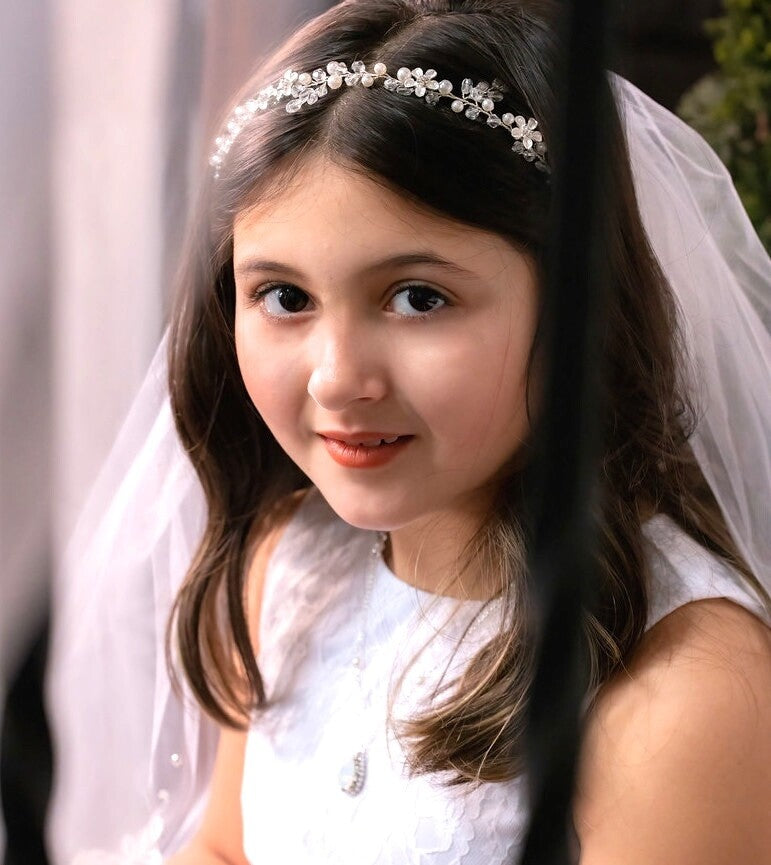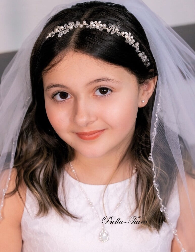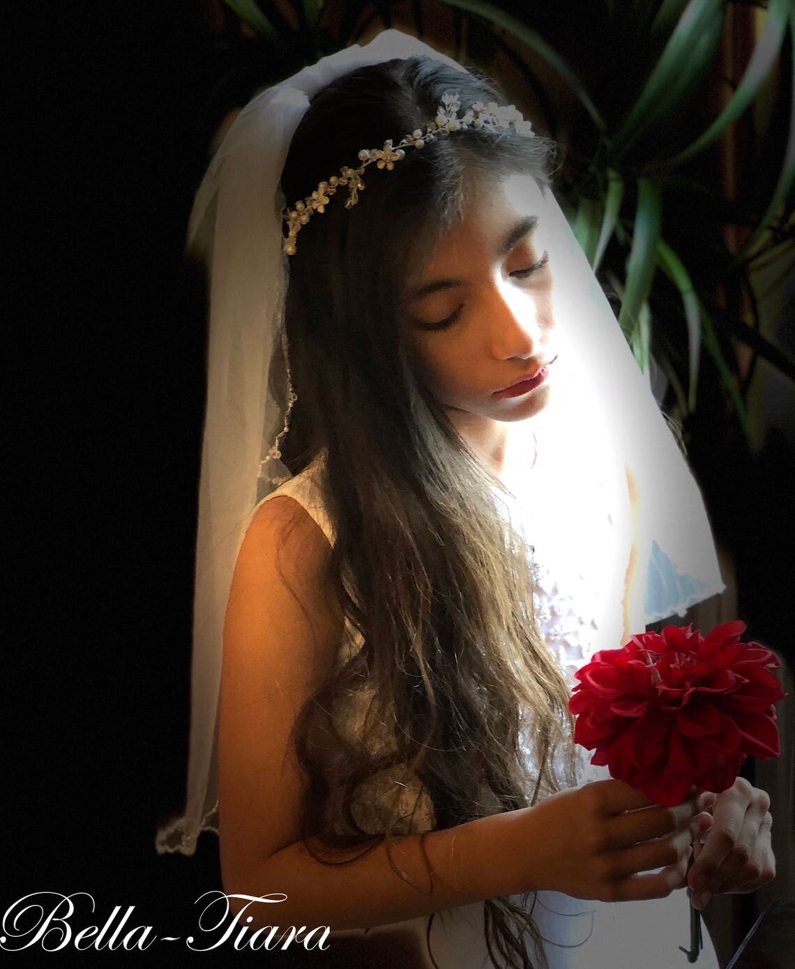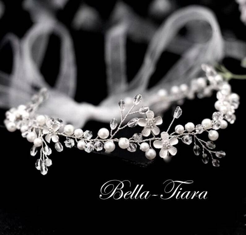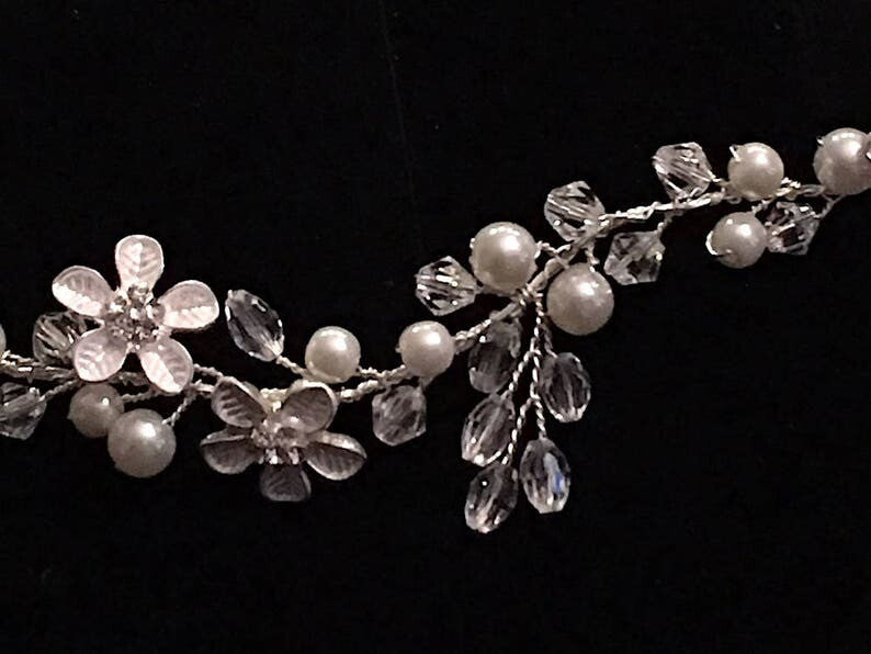 New beautiful soft off white flowers, crystals and baby pearls with ribbon headband perfect for communion.