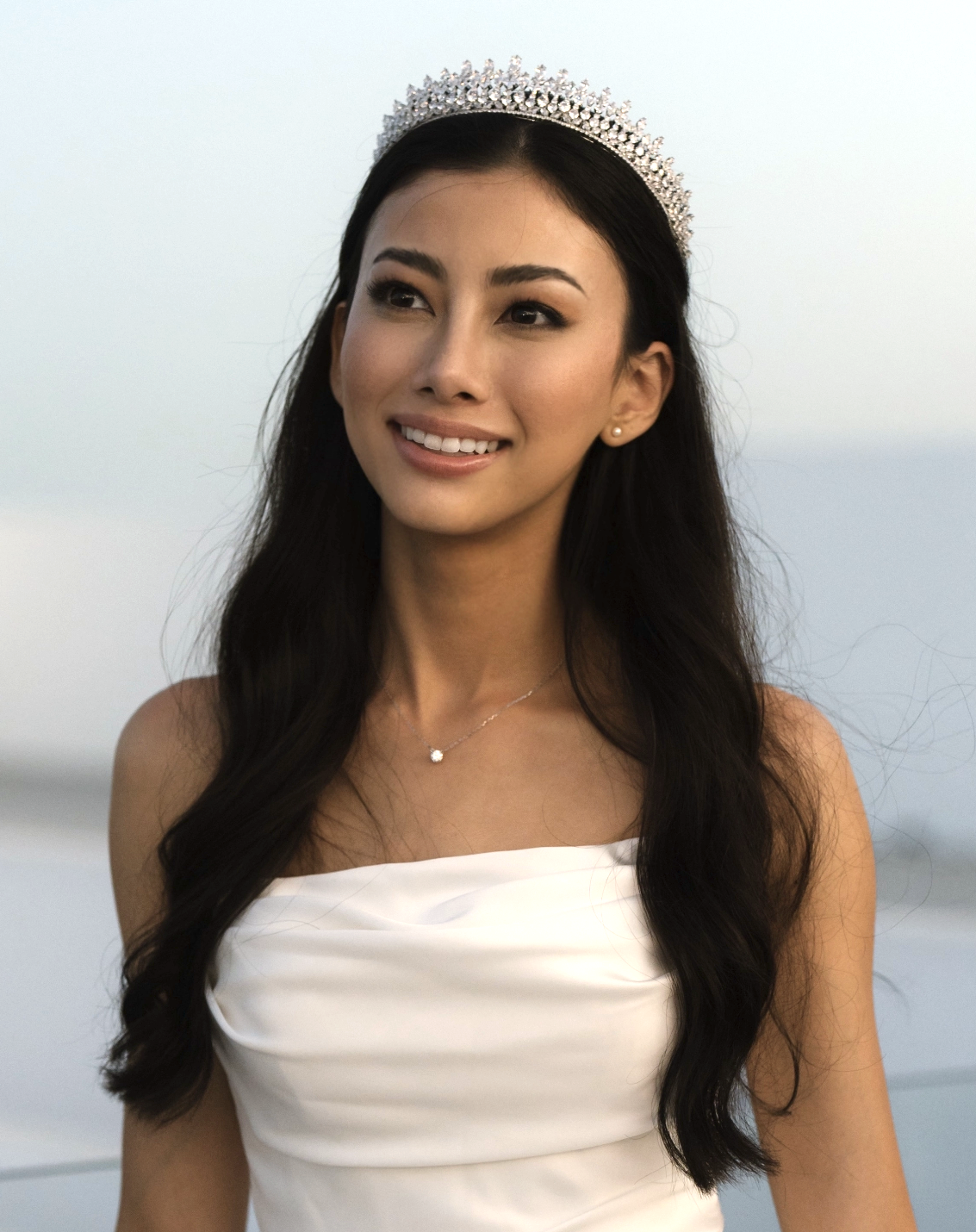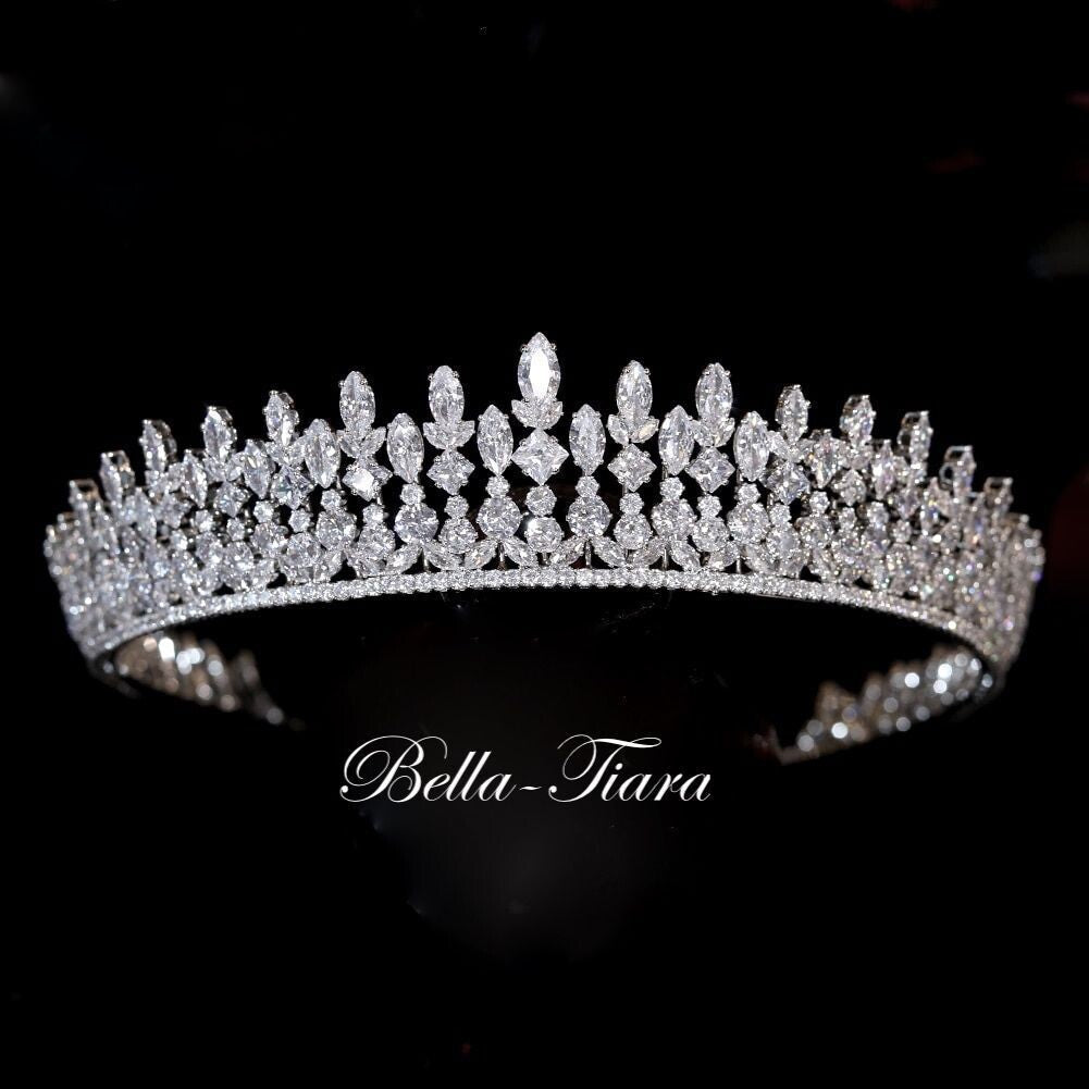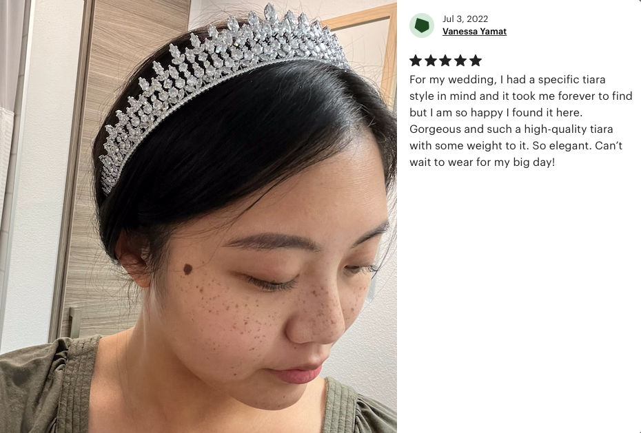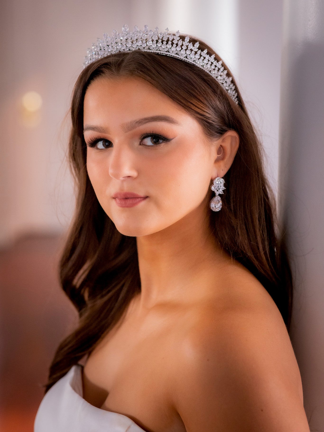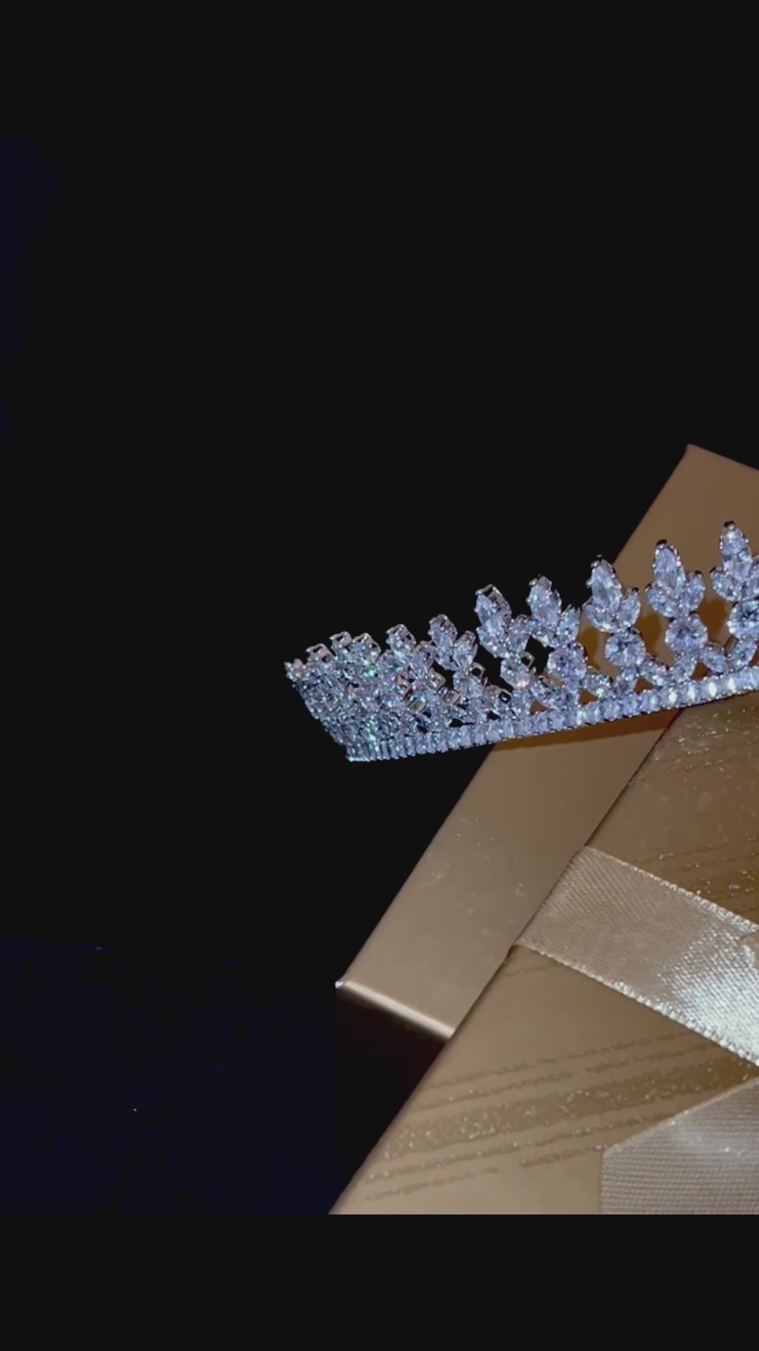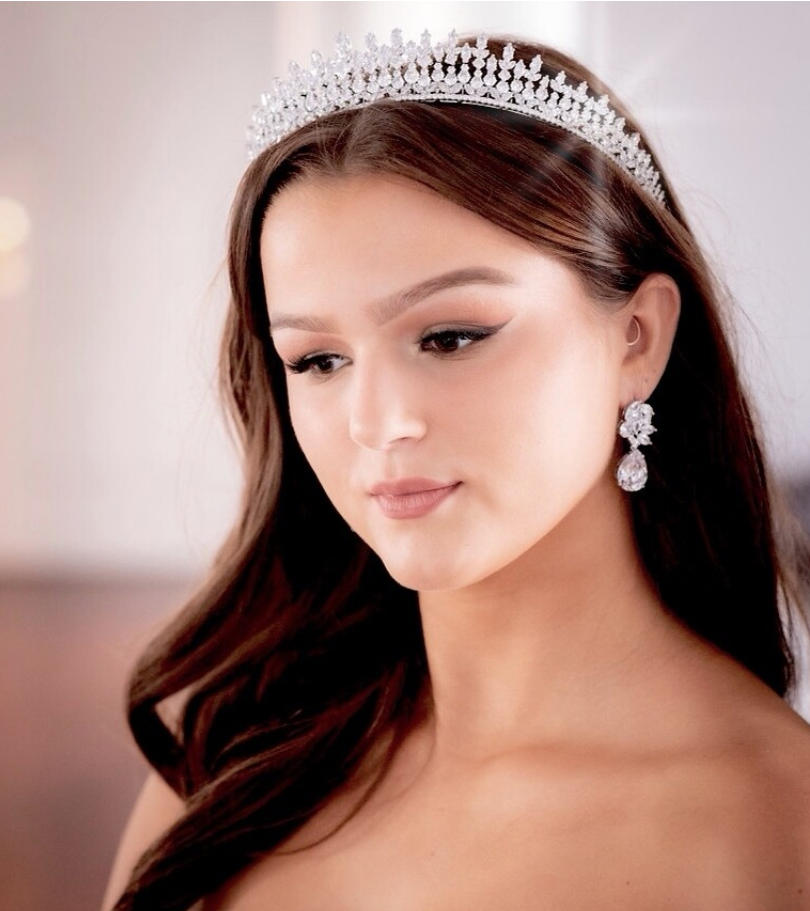 Just beautiful. Loving this royal timeless look, elegant yet very royal, dazzling Swarovski Crystal tiara with extended design, approx 1 1/2" high and two hoops on each end for bobbie pins