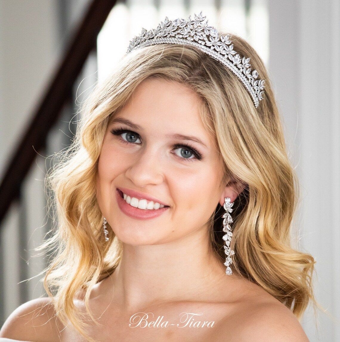 Beautiful marquise cut Swarovski crystal tiara, delicate yet dazzling approx 2.5" at highest point with hoops on each end for bobbie pins