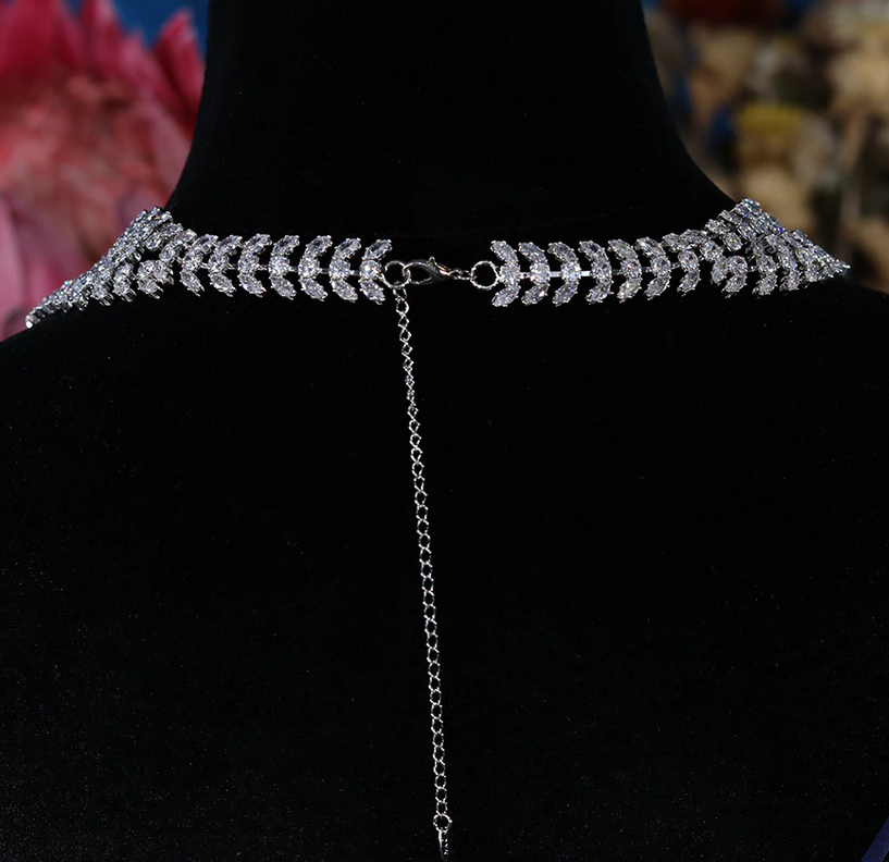 Princess Livia - Stunning simulated diamond crystal bridal necklace set