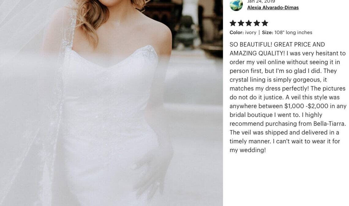I am so in love with my veil, it’s beautiful and customer service was great very helpful in helping me choose the correct length.. thank you