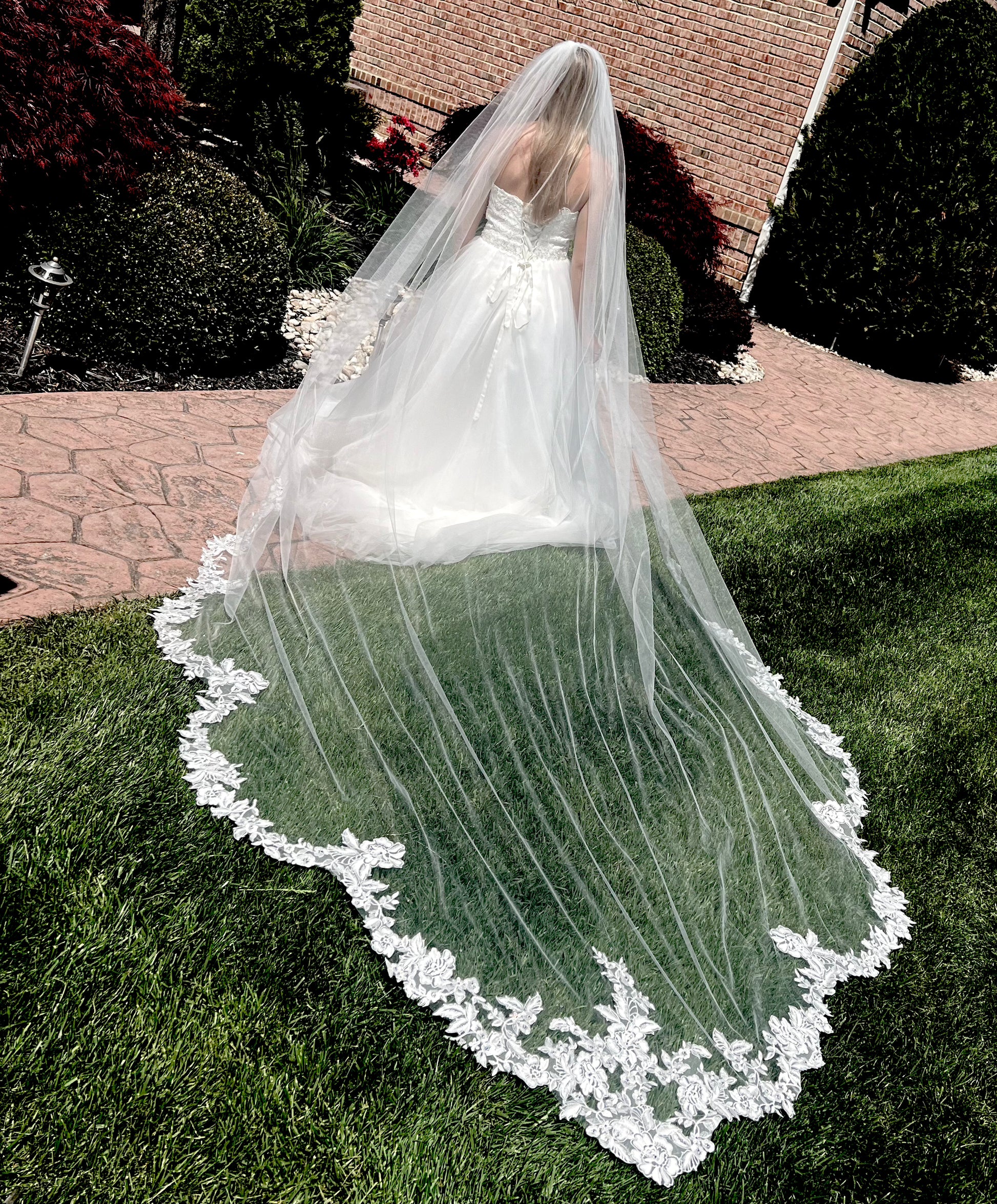 Floral beaded lace cathedral wedding veil with Free Blusher
