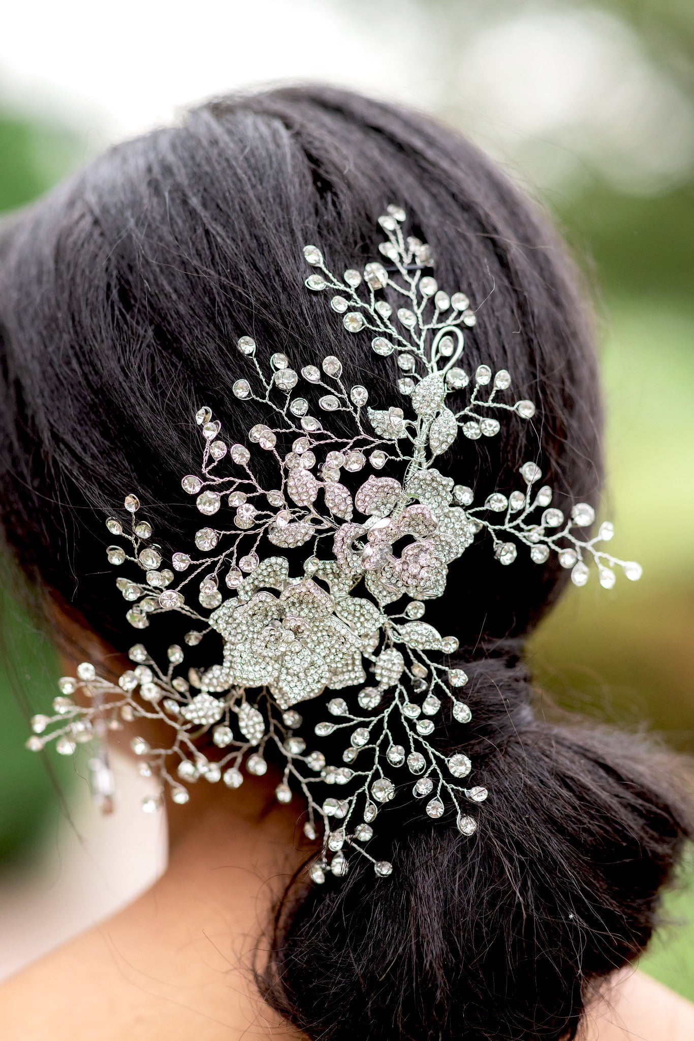 Rosetta- Stunning crystal rose wedding headpiece comb