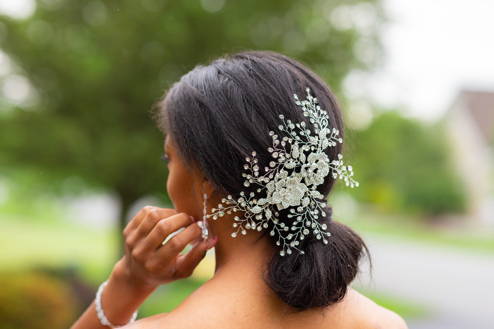 suitable for side or back of hair on flexible band has two hoops on each end for bobbie pins.
