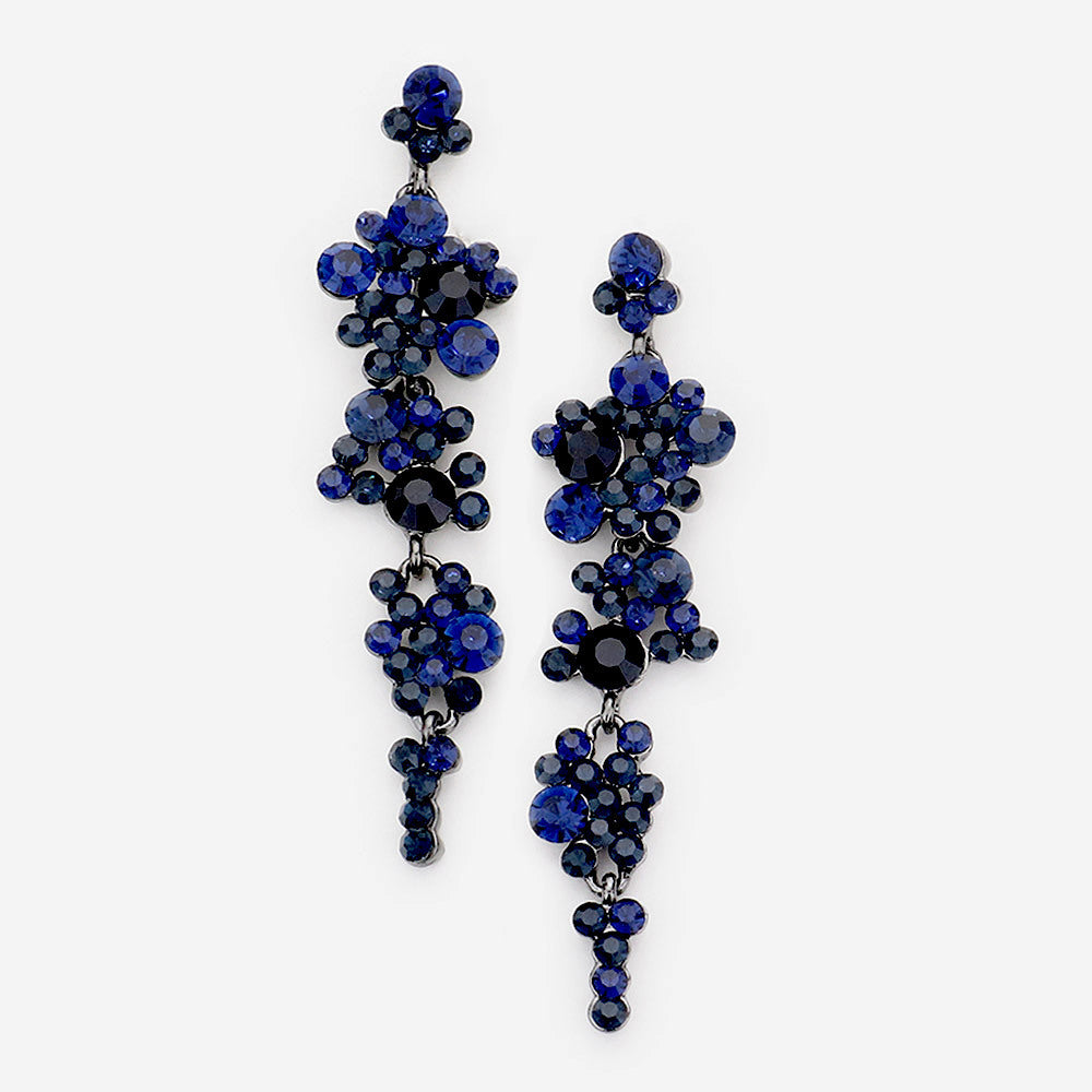 Make a glamorous statement with these dazzling long crystal drop navy blue earrings,