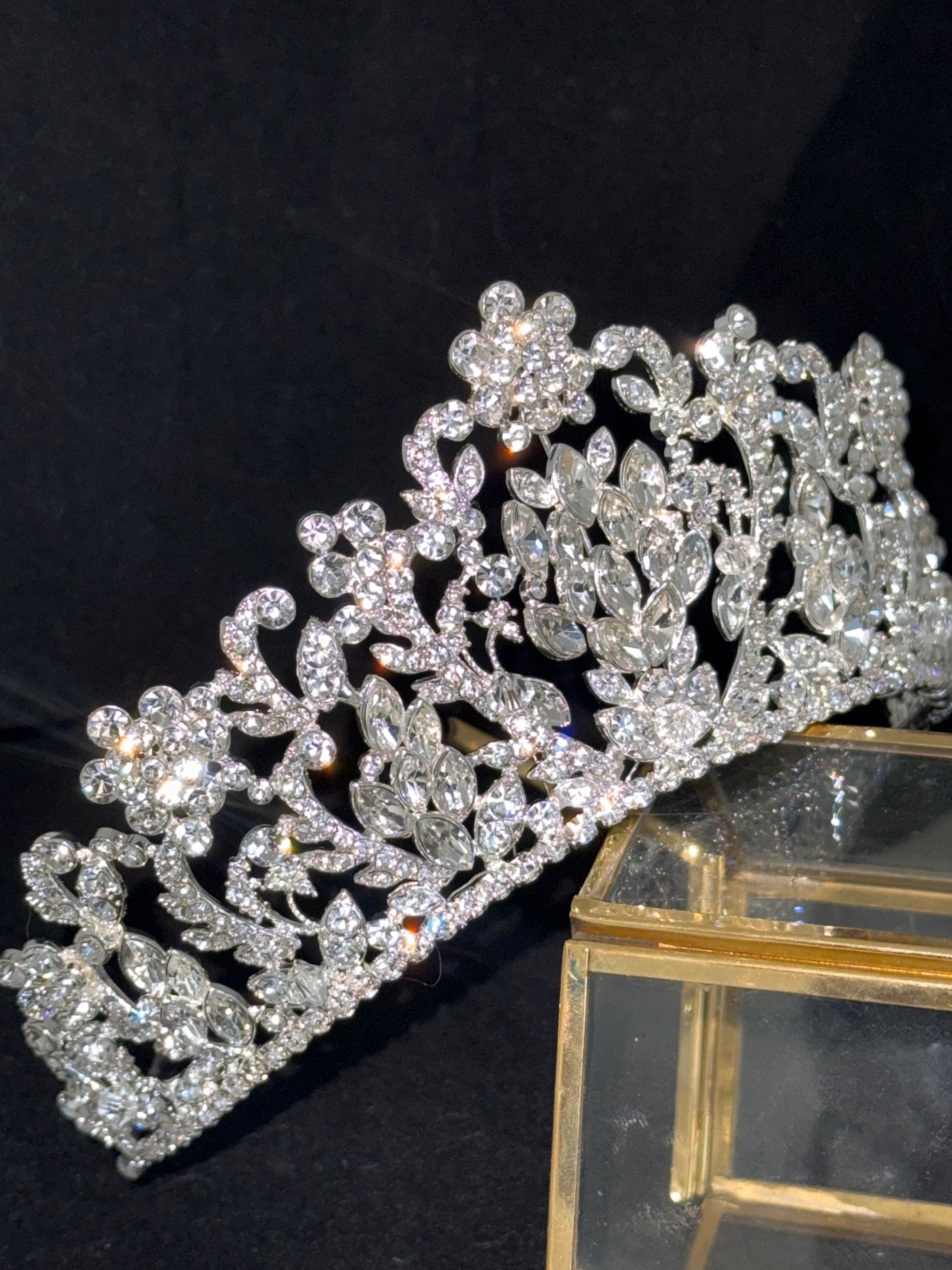 Elevate your wedding day look with the Ivana - Swarovski Crystal Wedding Tiara. This stunning tiara features exquisite Swarovski crystals in a captivating swirl design, fit for a true royal princess. Measuring approximately 3 inches at the highest point and equipped with 2 hoops on each end, this high-end tiara offers both flexibility and sophistication.