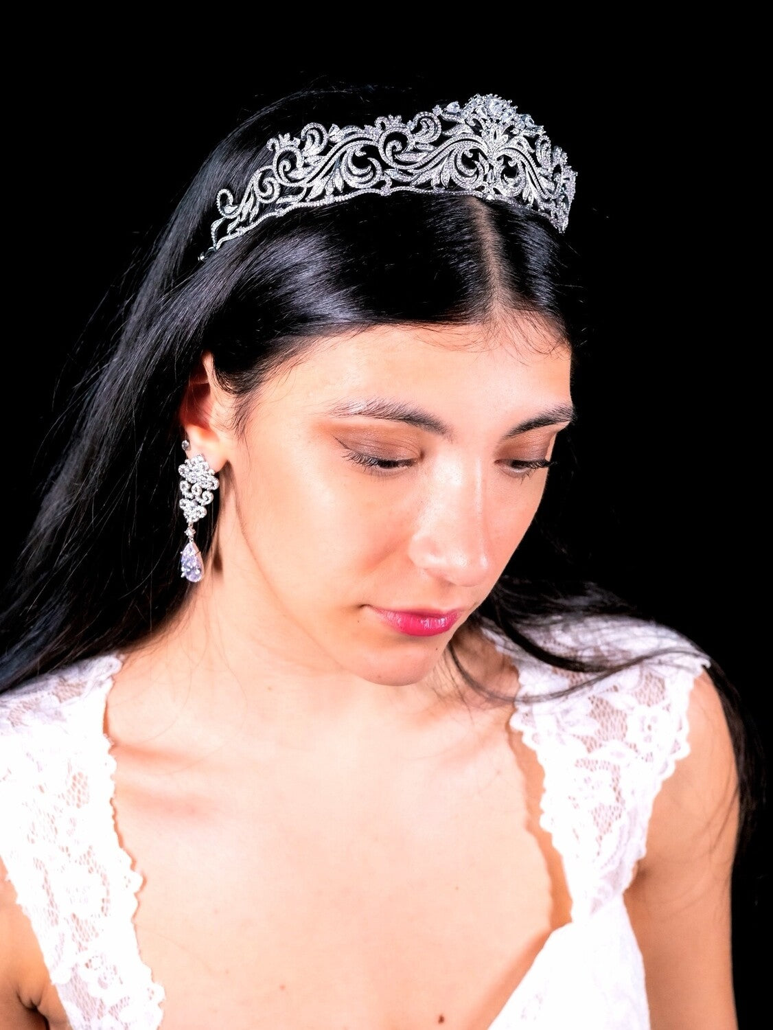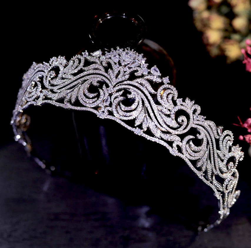 A luxurious princess crown tiara with a dazzling swirls royal pattern.