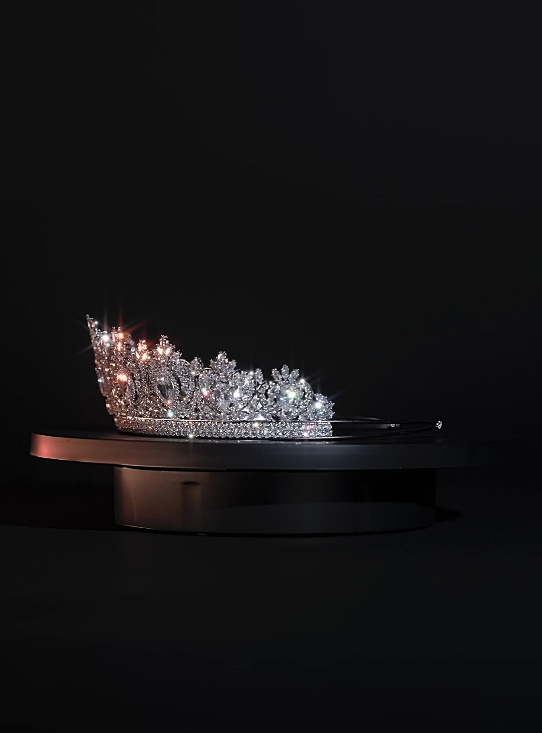 Measuring approximately 2 1/4 " in height, the tiara includes hoops on each end for bobby pins.