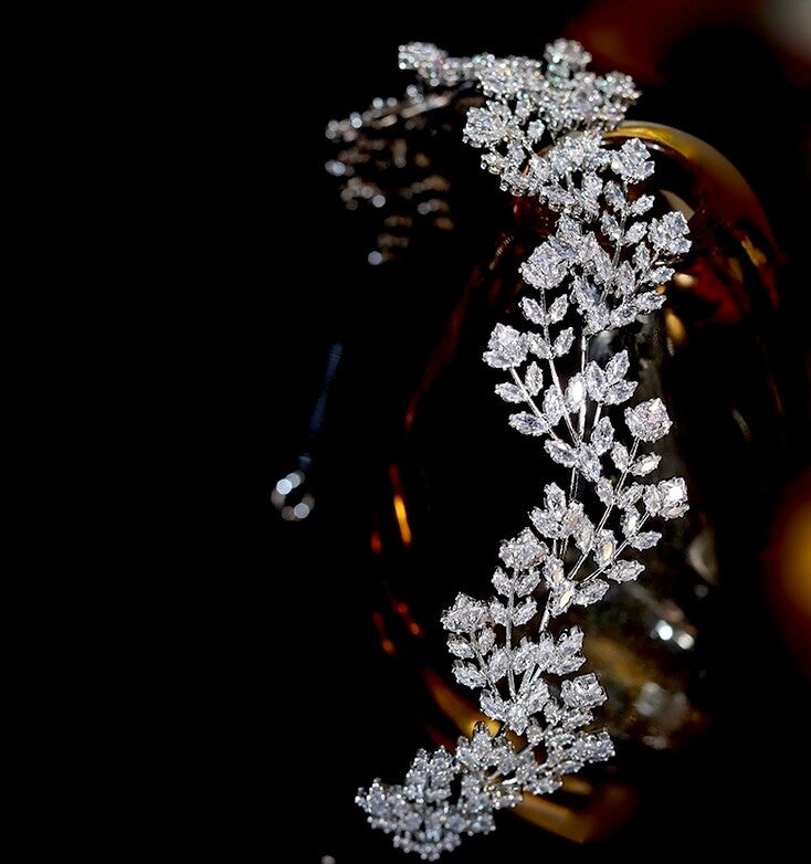 New to our collection, "Viola" absolutely exquisite, swarovski crystal vine floral design, about 1 1/4 wide with two hoops on each end for bobby pins...