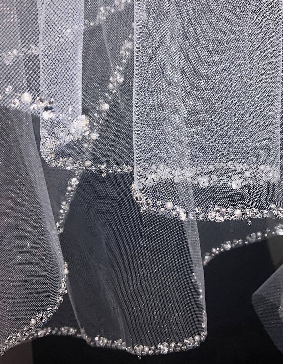 Beautiful one of our favorites handmade beaded edge veil with sequins, beads and pearls